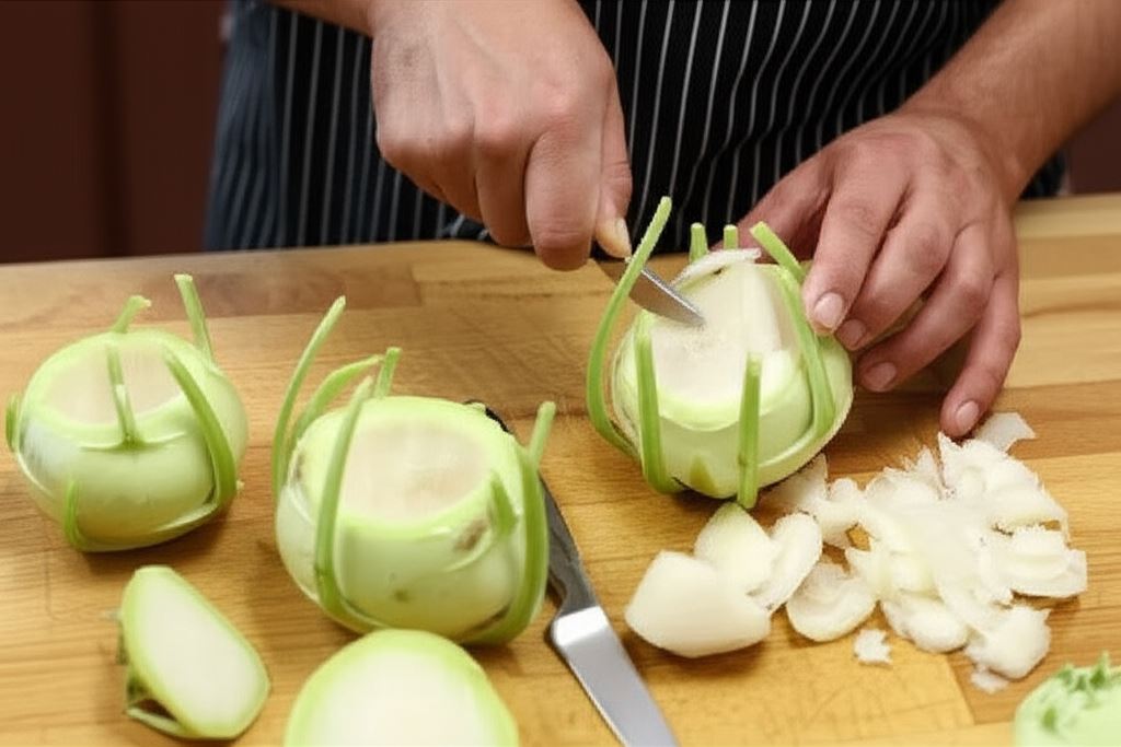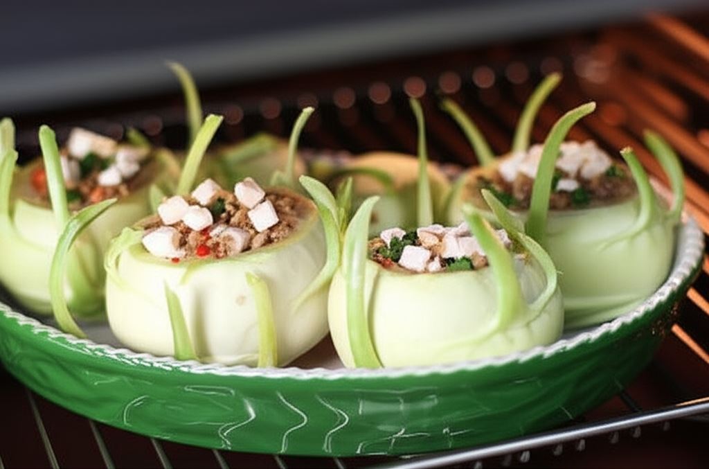 Odkryj niezwykłe połączenie delikatnej kalarepy i aromatycznego farszu mięsnego! Ta kompozycja to prawdziwa uczta dla podniebienia. Wydrążone kalarepki wypełnione soczystym mięsem mielonym, wzbogaconym świeżymi warzywami i przyprawami, tworzą danie, które zachwyca nie tylko smakiem, ale i wyglądem.