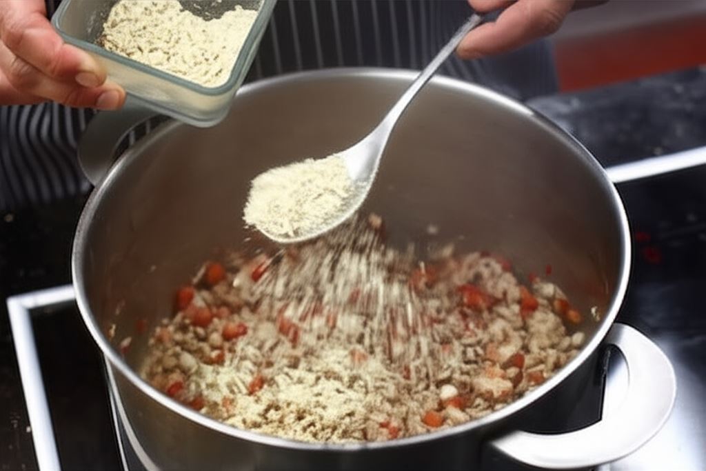 W garnku na rozgrzanym tłuszczu zrumień zmielone mięso, wsyp pokrojone warzywa, posiekaną kalarepkę i łyżeczkę kminu rzymskiego, całość przypraw do smaku Przyprawą do mięsa mielonego Knorr, która nada daniu właściwego aromatu. Wszystko gotuj przez około 10 minut, aż farsz stanie się prawie suchy.