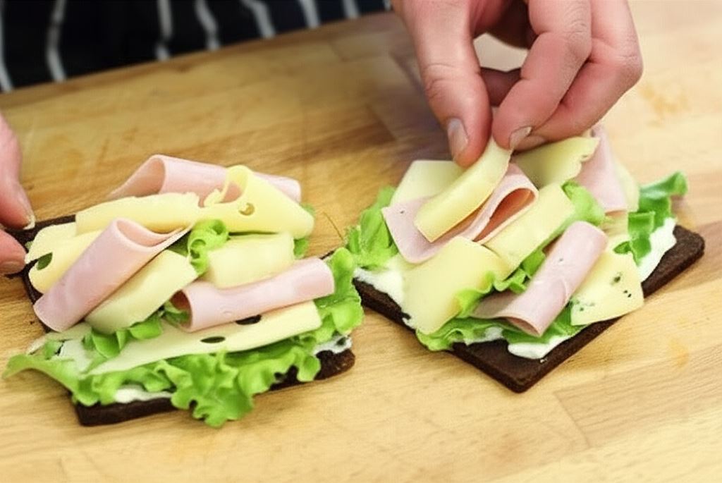 Na wierzch kanapek połóż pół plastra szynki i pół plastra ananasa.