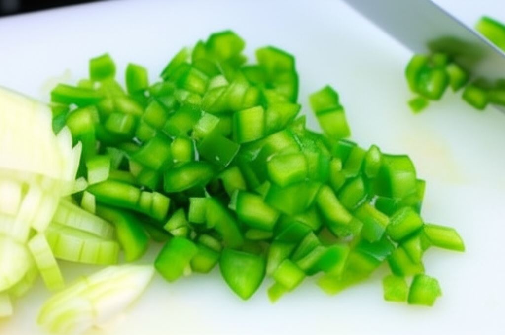 Paprykę i cebulę posiekaj w kostkę, a czosnek rozgnieć.