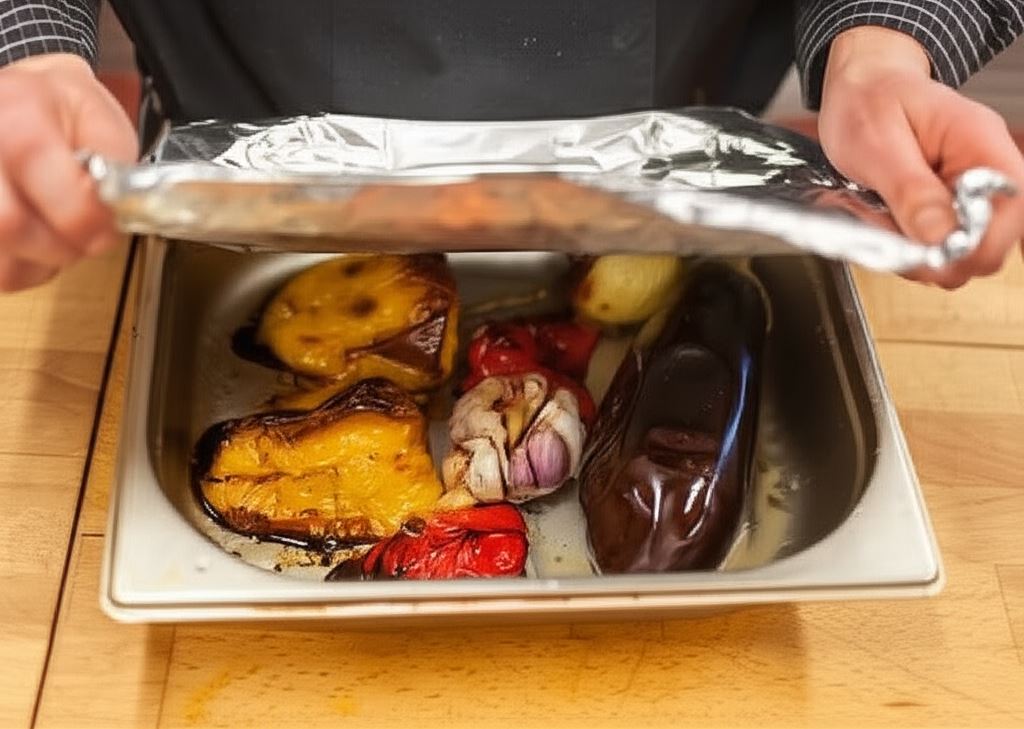 Ciepłe jeszcze warzywa nakryj folią, odstaw do wystygnięcia.
