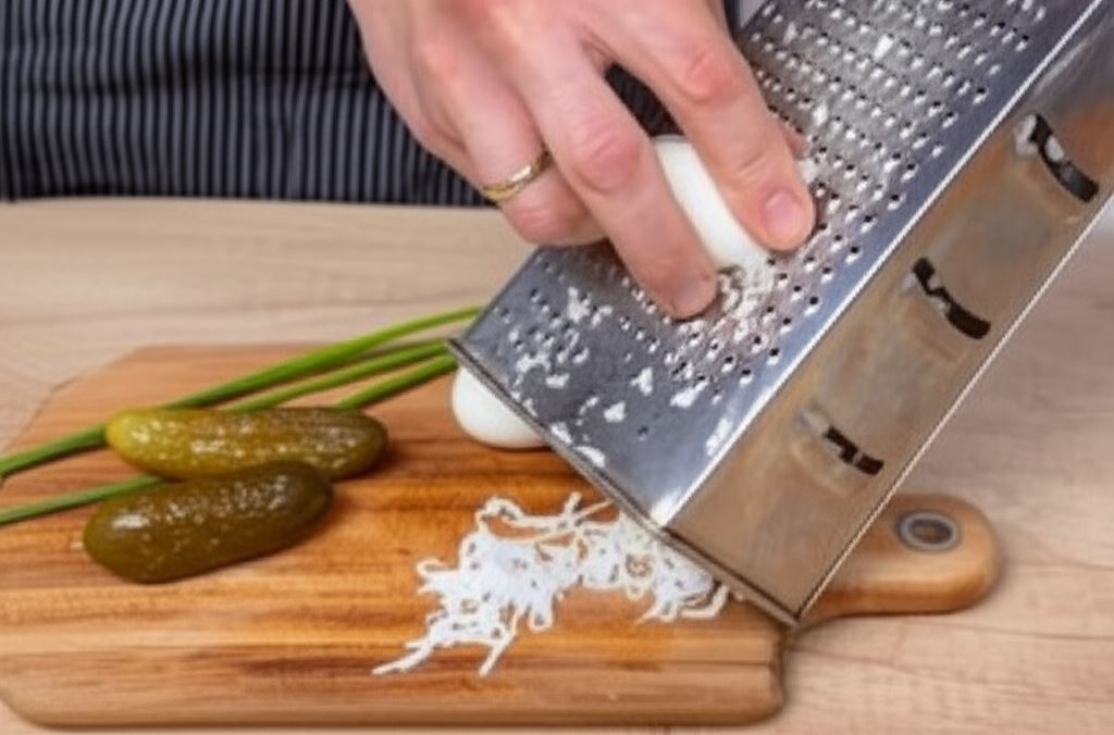 Jajka ugotuj na twardo, obierz i zetrzyj na drobnej tarce, ogórki pokrój w kosteczkę albo zetrzyj na tarce o grubych oczkach, drobno posiekaj szczypior. Nasiona słonecznika upraż na patelni.