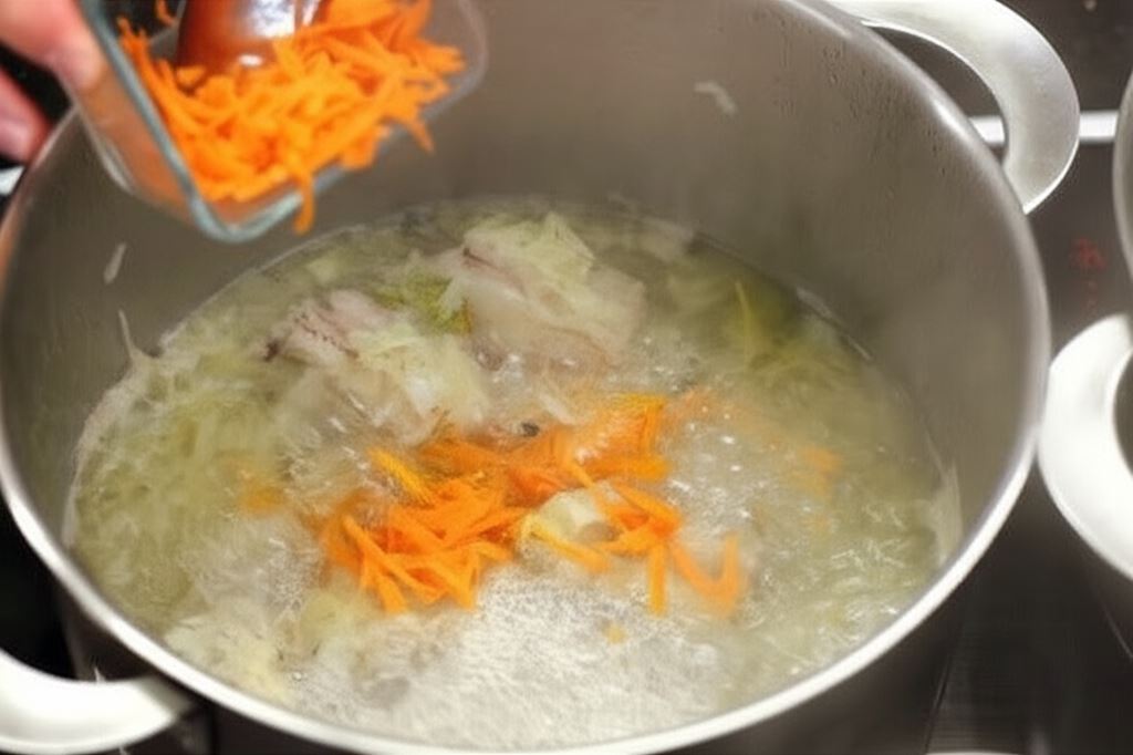 Po tym czasie wsyp do kapusty utartą na tarce marchew. W razie potrzeby dolej płyn wodą.