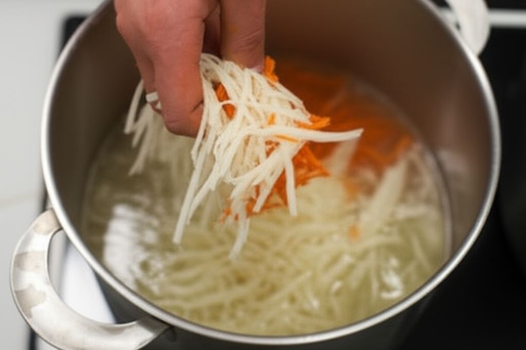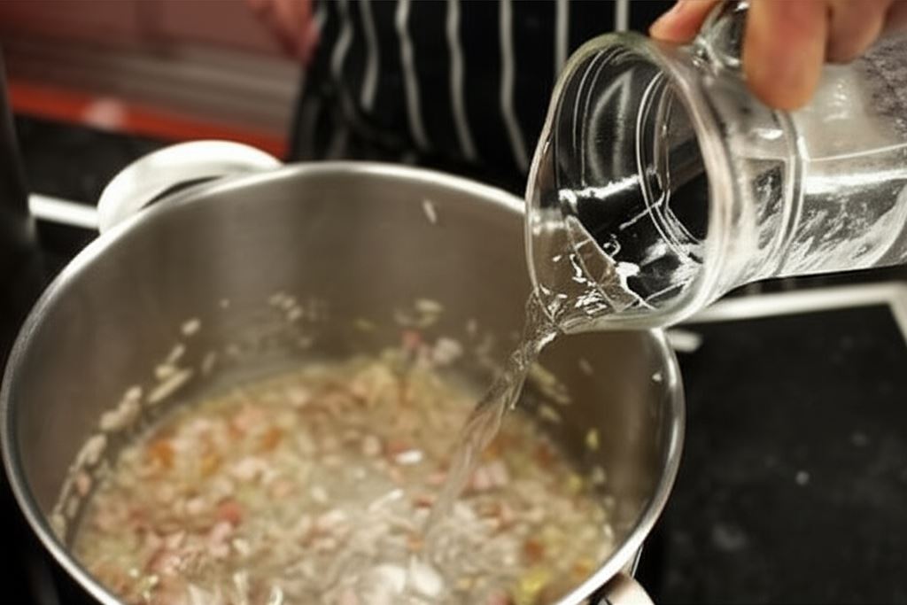 Kiedy się zrumienią, dodaj 1,5 litra wody.
