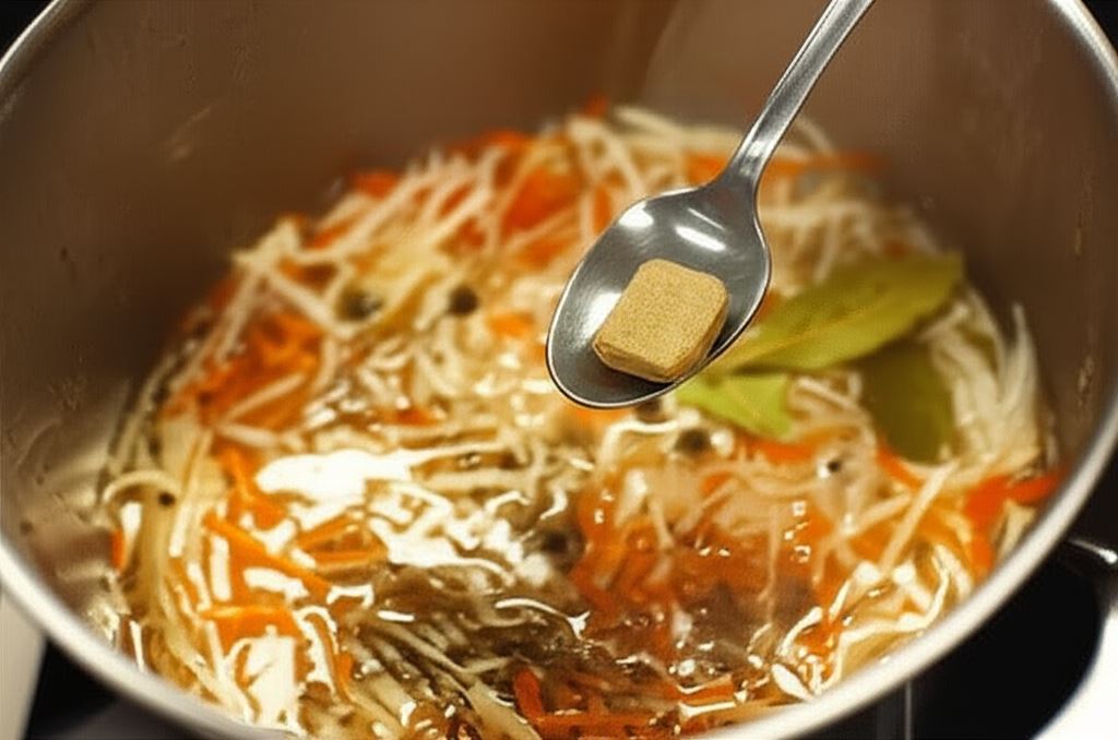 Jeśli lubisz intensywniejsze smaki, dodaj łyżkę koncentratu pomidorowego, który nada zupie lekko kwaskowaty posmak. Świeżo posiekany koperek posypany na wierzchu zupy doda jej świeżości i koloru. Kapuśniak najlepiej smakuje z kromką chrupiącego chleba żytniego na zakwasie, który doskonale komponuje się z delikatnym smakiem zupy.