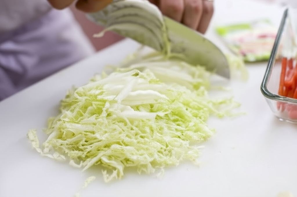 Kapustę opłucz, odcedź i poszatkuj na wąskie paski