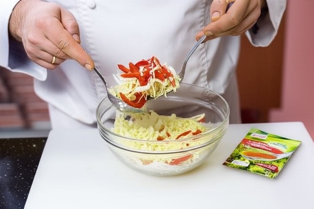 Możesz wzbogacić sałatkę o prażone ziarna sezamu, które dodadzą chrupkości i orzechowego smaku. Świetnie sprawdzą się także dodatki w postaci kiełków, orzechów nerkowca lub kawałków ananasa, które podkreślą słodko-kwaśny charakter potrawy. Dla ostrzejszej wersji dodaj posiekane chili lub kilka kropel sosu sriracha.