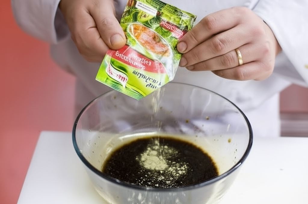 Sos sojowy starannie połącz z octem, cukrem, trzema łyżkami wody, olejem sezamowym, utartym imbirem i sosem sałatkowym Knorr. Skrop nim sałatkę.