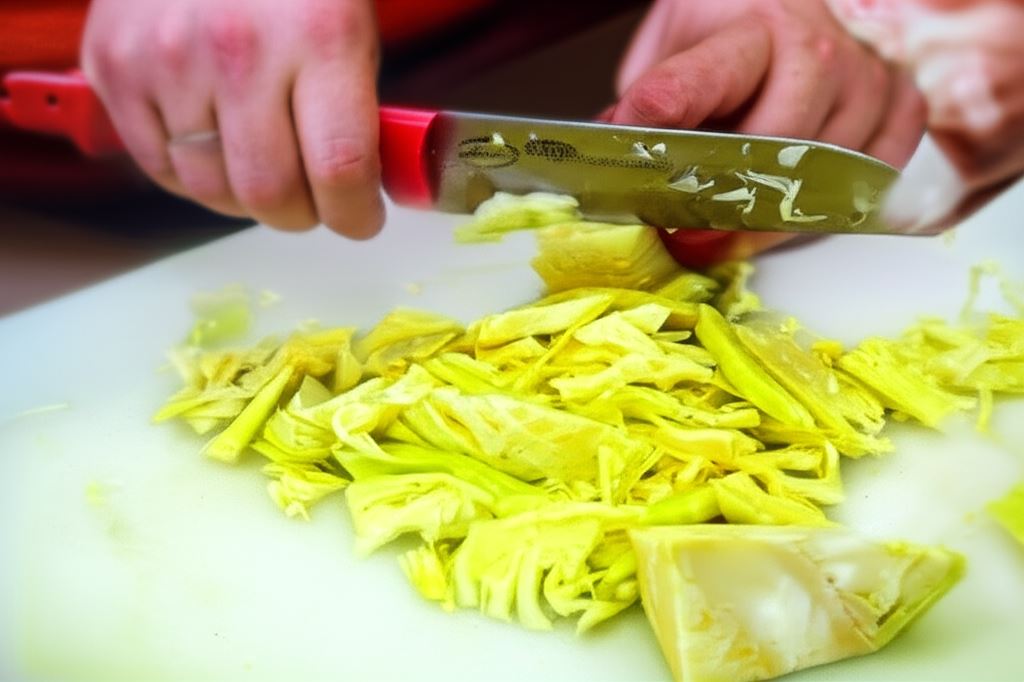 Posiekaj kapustę i podsmaż ją na maśle, następnie zalej niewielką ilością wrzątku i duś przez 20 minut.