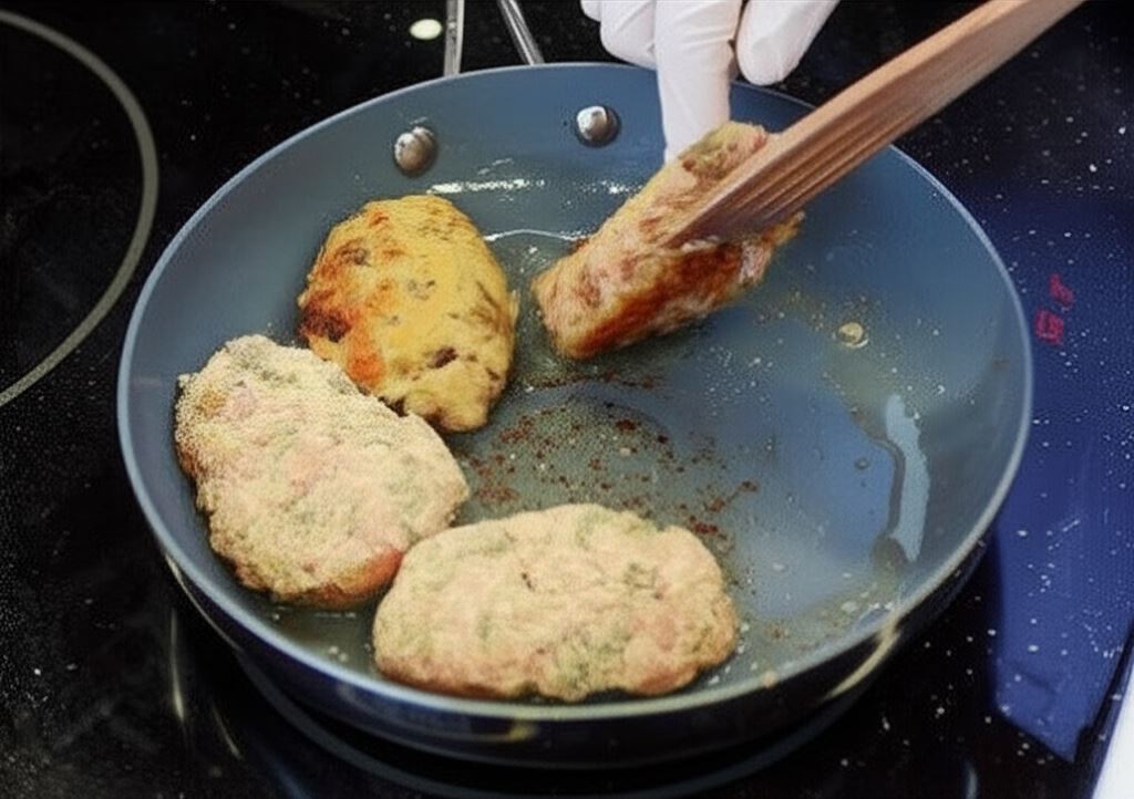 Z uzyskanej masy uformuj 6 małych kotlecików. Obtocz je w bułce tartej i usmaż na patelni na złoty kolor.