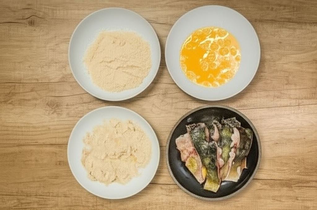 Aby uzyskać idealnie chrupiącą panierkę, warto przed smażeniem umieścić filety na sitku nad gotującą się wodą. Para wodna zetnie mąkę na powierzchni ryby, tworząc spójną warstwę, która podczas smażenia zamieni się w perfekcyjnie chrupiącą skorupkę.