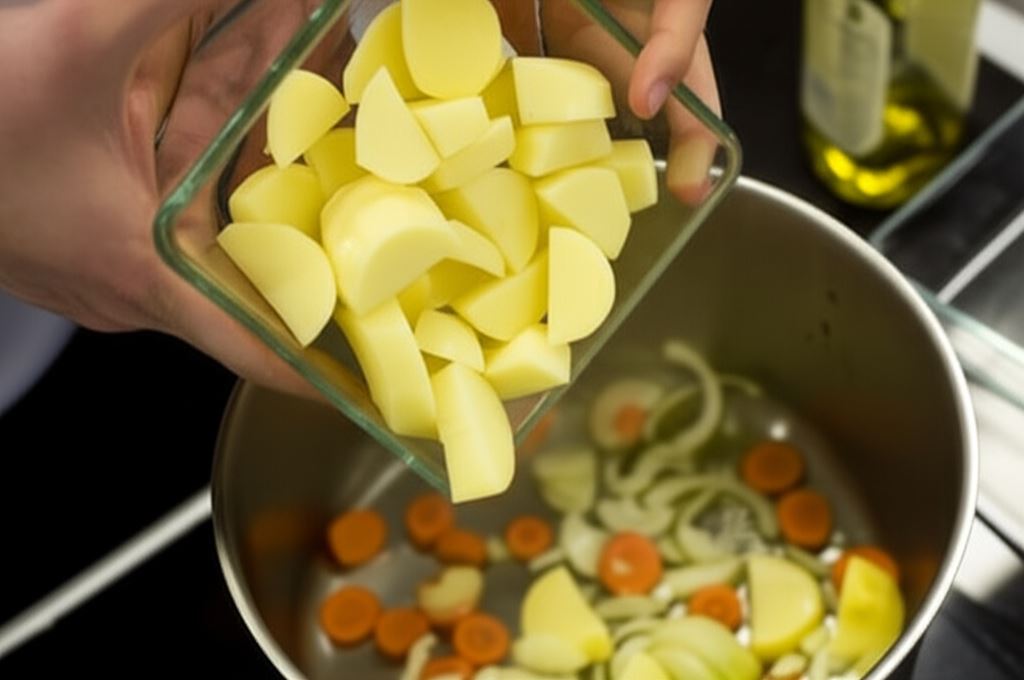 Wsyp Bulion na włoszczyźnie Knorr i gotuj do momentu, aż ziemniaki zmiękną.