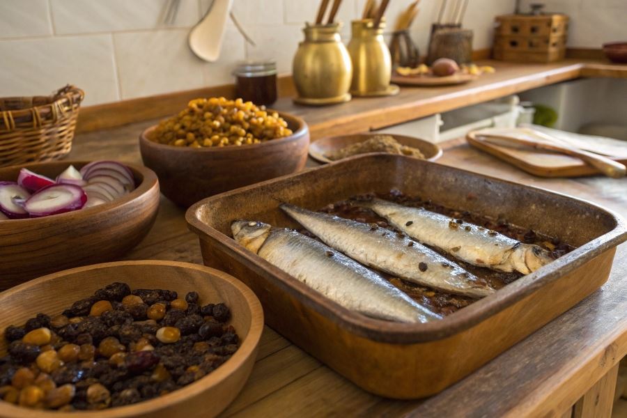 Rodzynki w śledziach po kaszubsku nie pojawiły się przypadkowo. Ten charakterystyczny dodatek odzwierciedla wpływy handlowe i kulturowe regionu. Kaszubi, prowadząc wymianę handlową z kupcami z Europy Zachodniej i krajów nadbałtyckich, poznali egzotyczne wówczas bakalie. Słodkie rodzynki w kontraście z kwaśno-słonym śledziem stworzyły unikalną kompozycję smakową, która przetrwała próbę czasu.