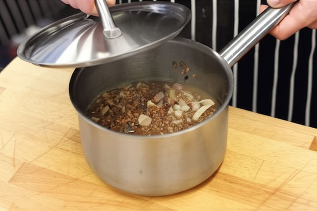 Zredukuj ogień i gotuj kaszę aż do wchłonięcia całej cieczy. Zdejmij garnek z ognia, nakryj i odstaw na 10 minut.