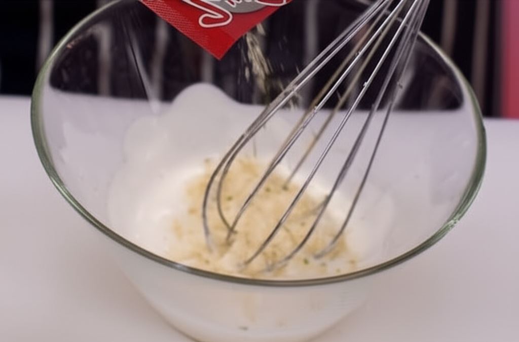 Wymieszaj sos czosnkowy z majonezem oraz jogurtem.