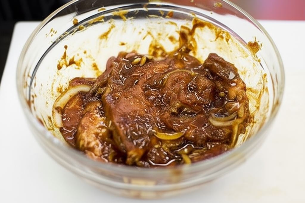 Wetrzyj starannie marynatę w mięso i pozostaw na co najmniej 2 godziny.
