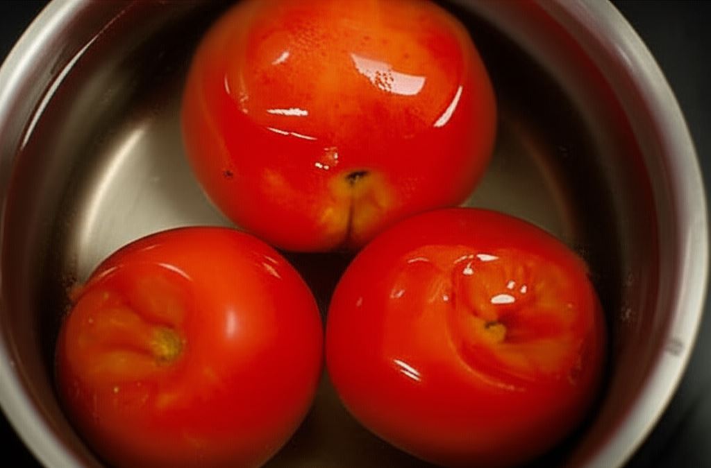 Pomidory włóż na 1 minutę do wrzątku, następnie obierz ze skórki i umieść w malakserze.