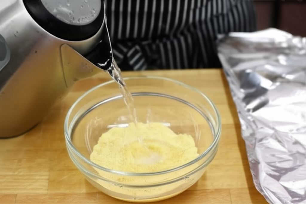 Kuskus zalej wrzątkiem 1 cm powyżej poziomu kaszy. Następnie przykryj i odstaw na 5 minut, aby kasza zaabsorbowała całą wodę.