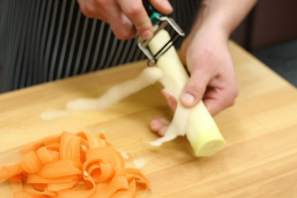 Marchewkę i pietruszkę pokrój na cienkie plastry.