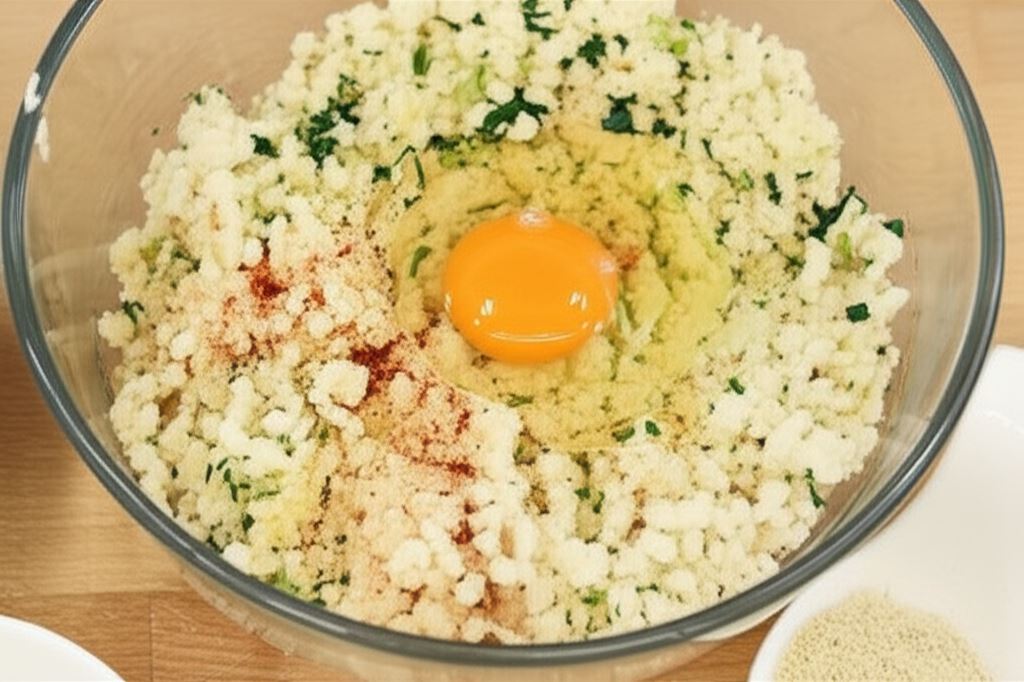 Zmiel namoczoną ciecierzycę w maszynce do mięsa wraz z dwoma ząbkami czosnku, serem feta, chilli oraz natką pietruszki. Do uzyskanej masy wsyp jajko, bułkę tartą, kmin rzymski, nasiona sezamu i chia.
