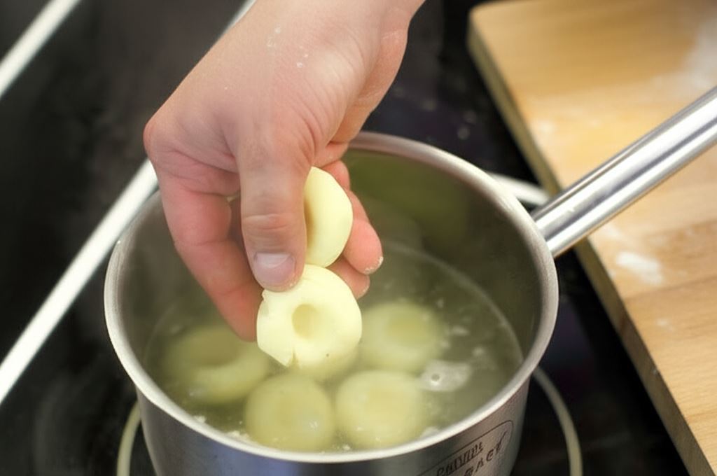 Gotuj uformowane kluski śląskie w delikatnie osolonym wrzątku przez około 2-3 minut.