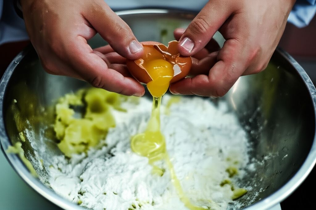 W naczyniu wymieszaj poniższe składniki – przetarte ziemniaki, obydwa typy mąki, cukier puder oraz jajka – i zagnieć gładkie, jednolite ciasto.