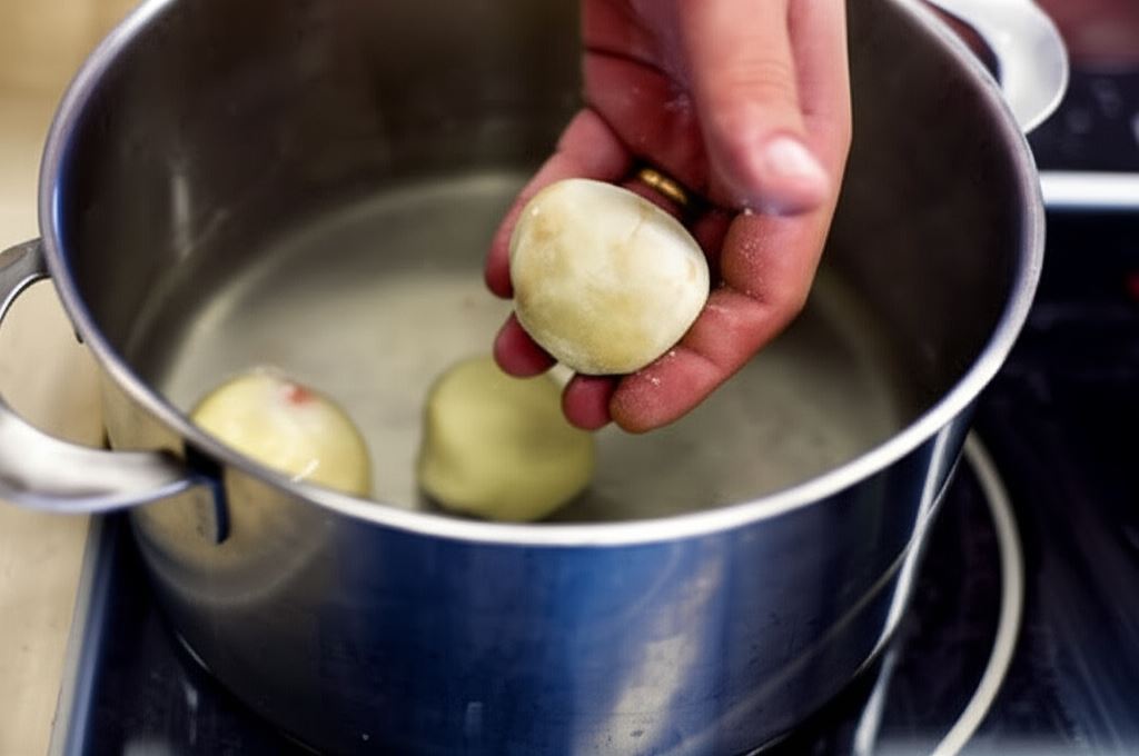 Przygotowane kulki wrzucaj delikatnie do osolonej wrzącej wody, gotuj przez około 2-3 minut. Wyciągaj łyżką cedzakową.