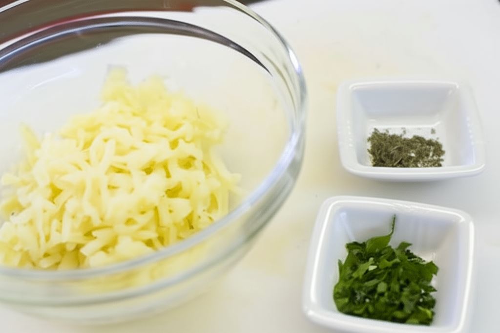 Ziemniaki opłucz i ugotuj w skórkach, potem zetrzyj na tarce. Zioła drobno posiekaj.