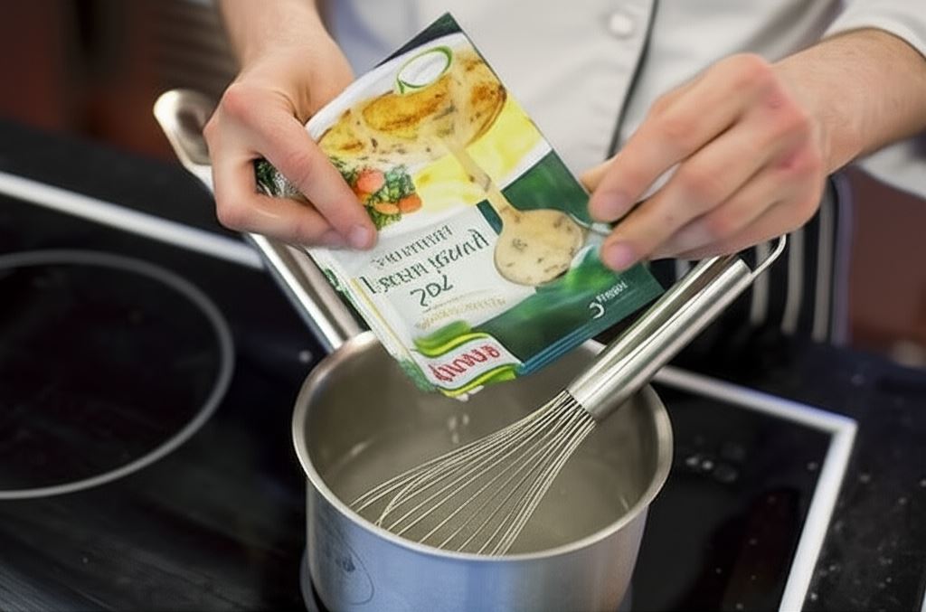 Sporządź sos borowikowy Knorr zgodnie z instrukcją podaną na opakowaniu.