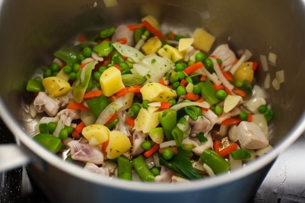 Dorzuć mieszankę warzyw i smaż przez kilka minut.
