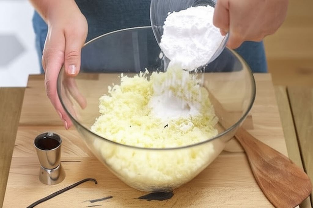 Wydłub nasiona z wanilii, wsyp je razem z cukrem pudrem i rumem do miski i starannie wszystko wymieszaj. Odstaw do lodówki do schłodzenia na 1h.