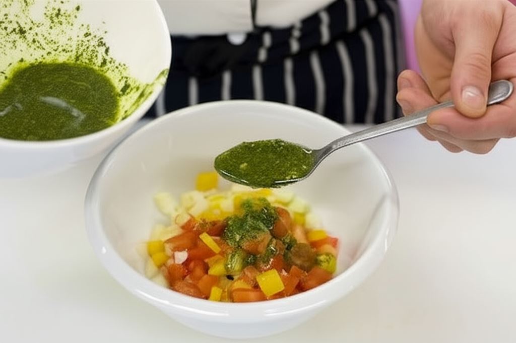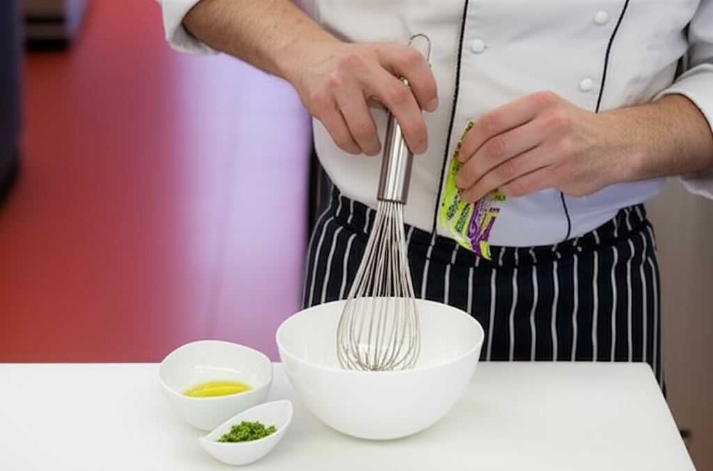 Sos Knorr połącz z 3 łyżkami wody i 3 łyżkami oliwy. Posiekaj drobno szczypior i dodaj do sosu.