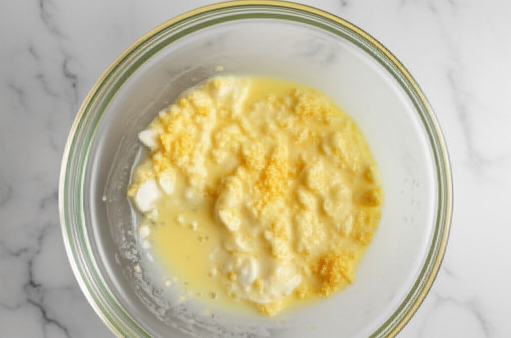 Wymieszaj twarożek ze śmietaną, dodaj posiekane żółtka i przypraw według smaku.