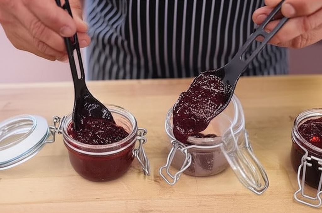 Konfiturę wkładamy do wysterylizowanego słoika, gdy jest gorąca. Słoik zakręcamy i obracamy do góry dnem.