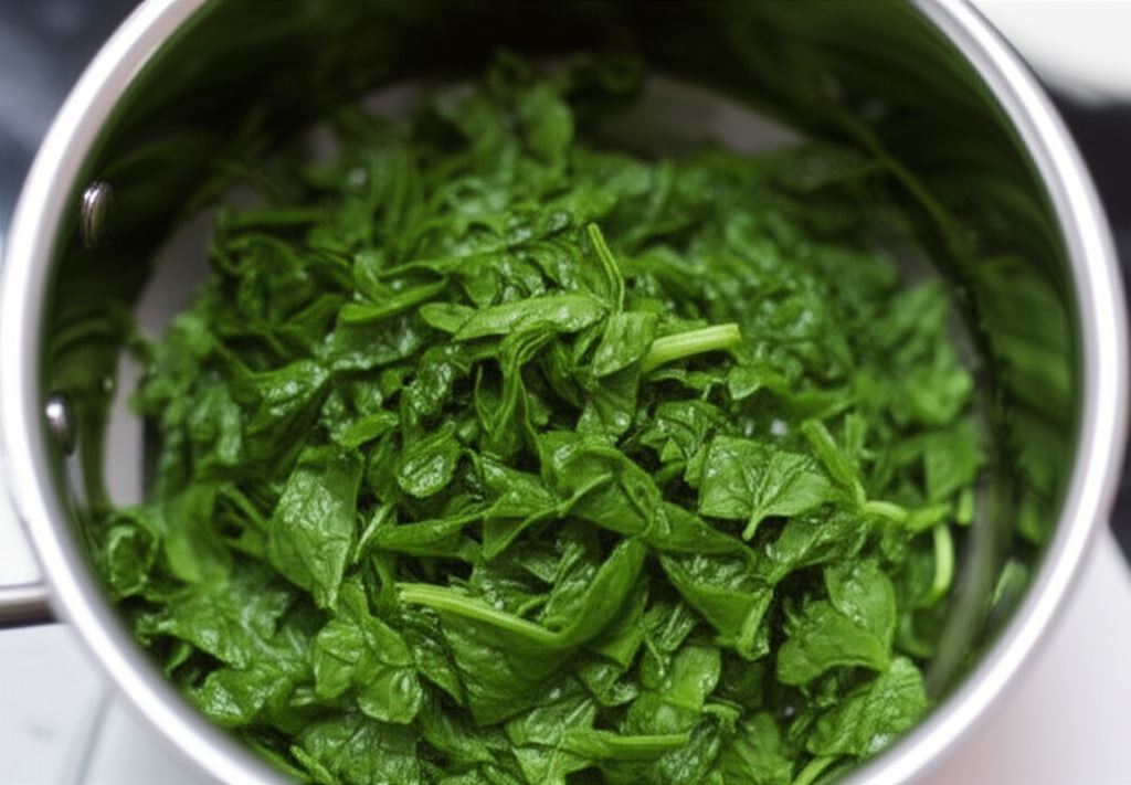 Odłóż szpinak do rozmrożenia. Potem umieść go na sitku i starannie odciśnij nadmiar wody.