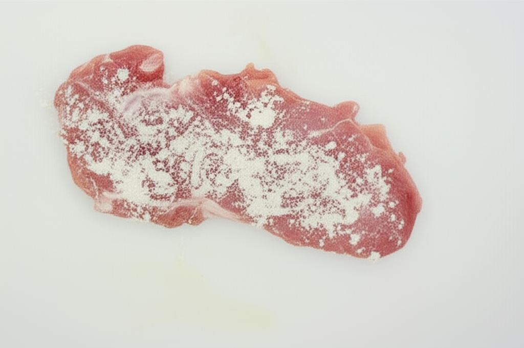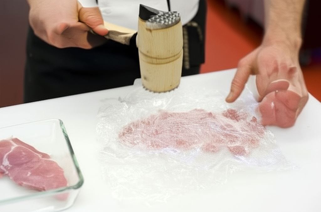 Kotlety delikatnie rozbij, aby zwiększyły swoją średnicę co najmniej dwukrotnie.