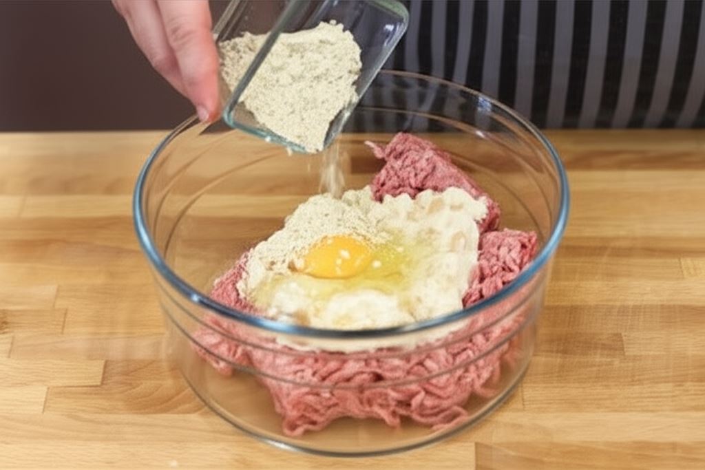 Mięso mielone umieść w misce, wymieszaj z odciśniętą bułką i jajkiem. Masę przypraw Przyprawą do mięsa mielonego Knorr i zagnieć na jednolitą konsystencję. Za sprawą przyprawy mięso zyska wyrazisty smak.