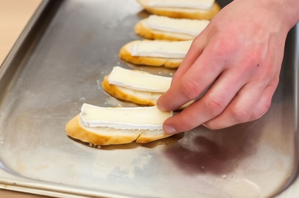 Potem umieść na każdej grzance ser i zaczekaj aż się przyrumieni.