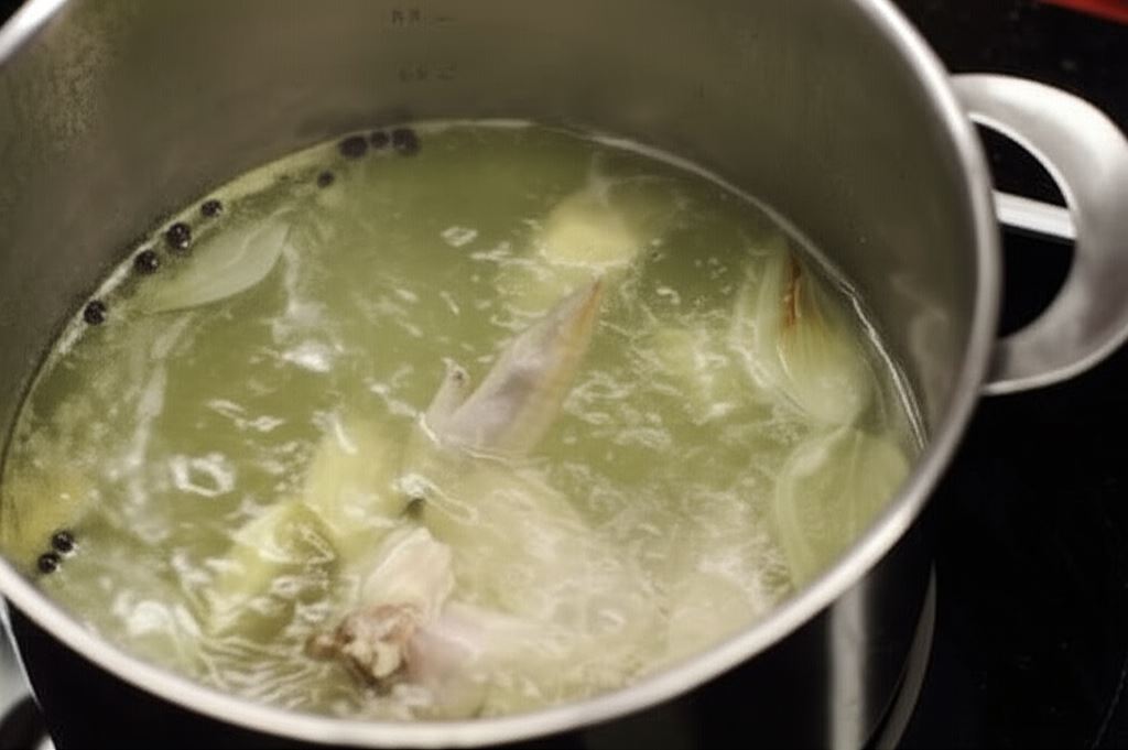 Przygotuj wywar z części rosołowej, przypraw i warzyw. Potem przecedź go.