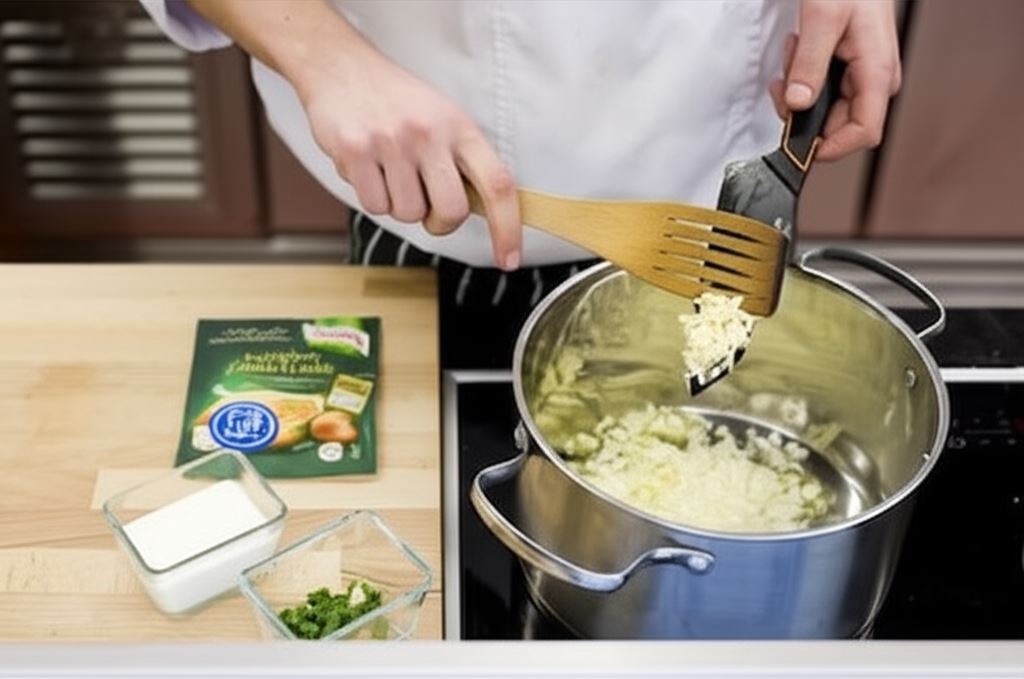 Zupę Knorr połącz z 500 ml wody i dodaj do garnka zawierającego cebulę.