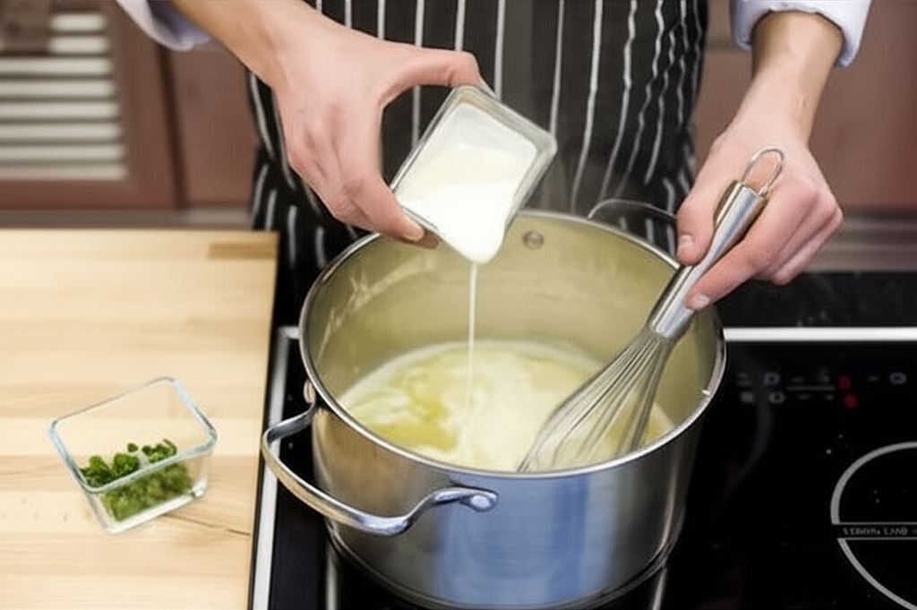 Wlej śmietankę, starannie zamieszaj i gotuj przez około 5 minut.