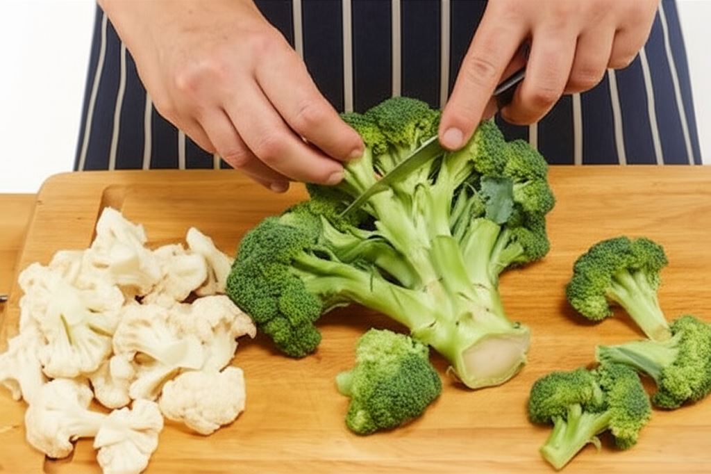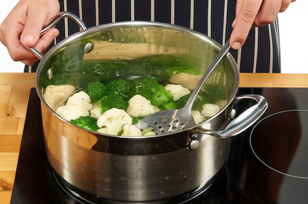 Blanszuj brokuły i kalafior we wrzącej wodzie przez 3 do 5 minut.