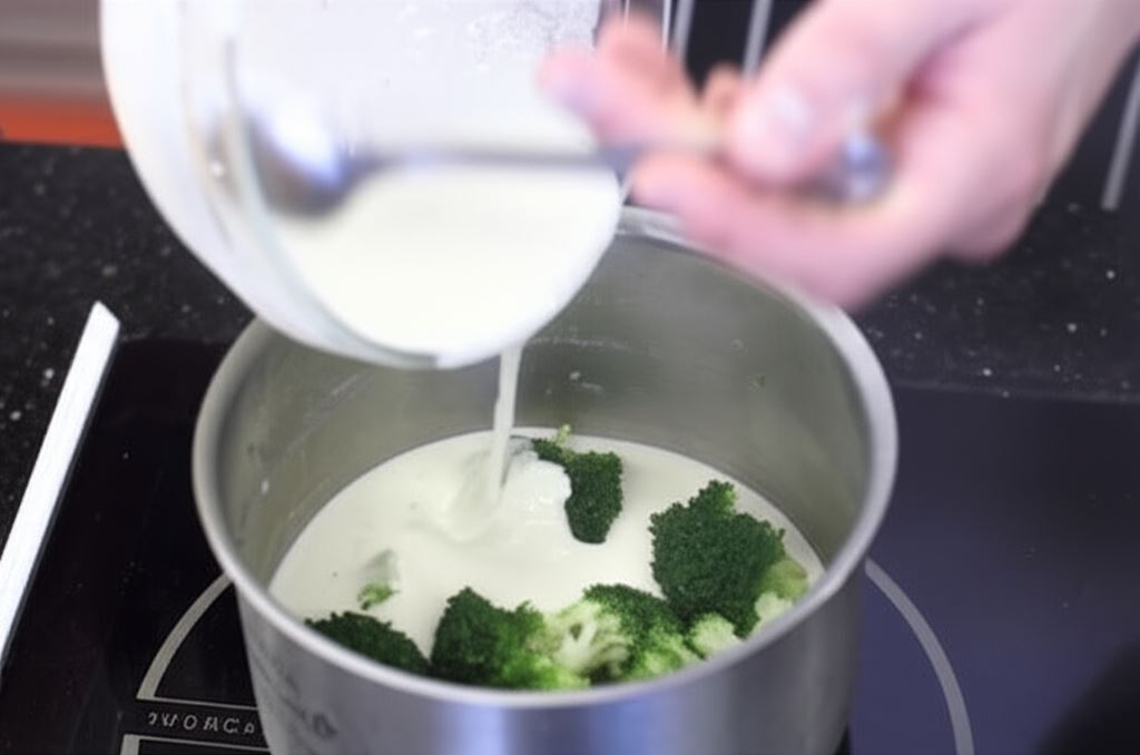 Wlej sos do brokułów. Całość podduś przez 2 minuty.