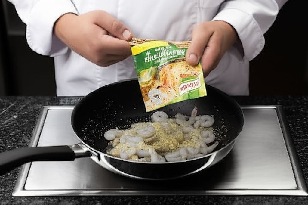 Krewetki dokładnie oczyść i opłucz. Przypraw przyprawą Knorr.