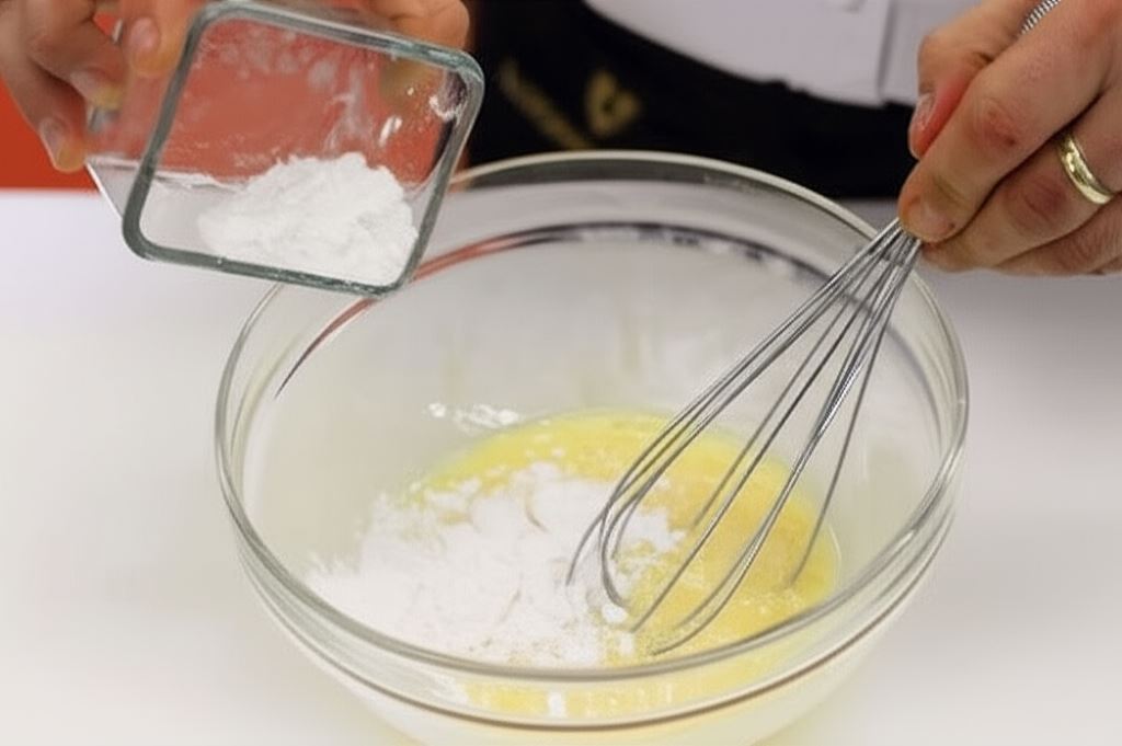 Jajka rozbij widelcem, wsyp mąkę i starannie wymieszaj.