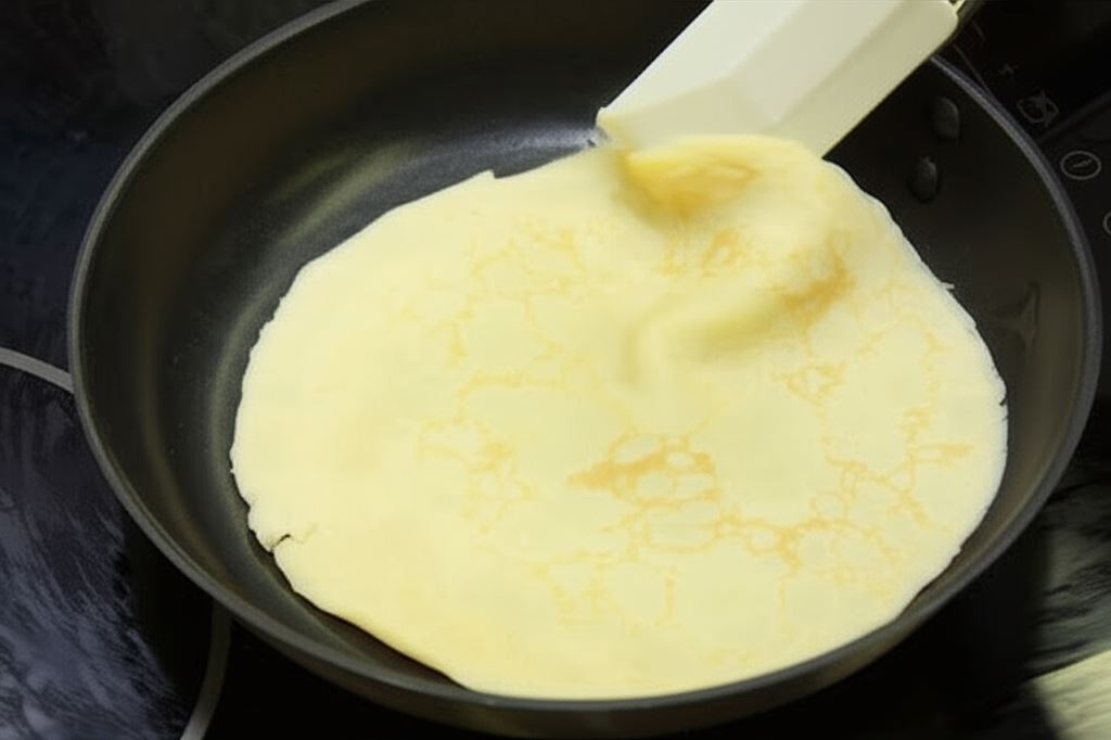 Połącz mąkę, jajka i masło. Powoli dodawaj mleko, nieustannie mieszając. Przypraw odrobiną soli według uznania i odstaw na 10 minut. Z tak przygotowanej masy usmaż naleśniki.