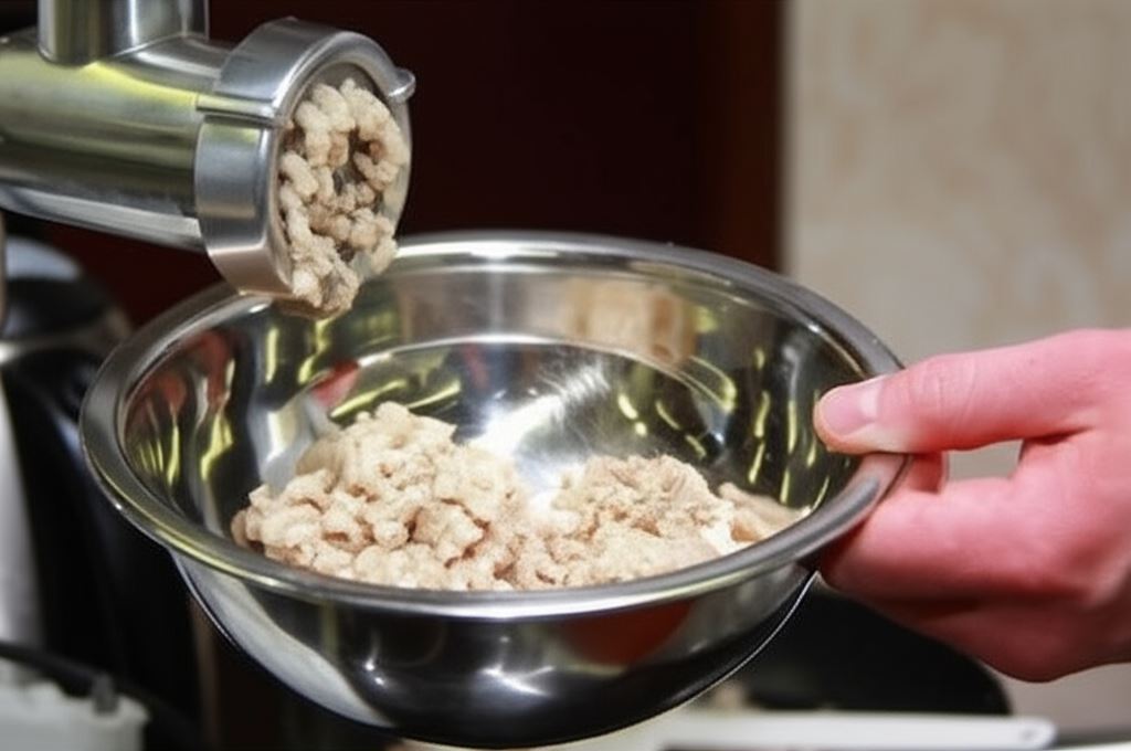 Przepuść mięso wraz z cebulą przez maszynkę do mielenia.