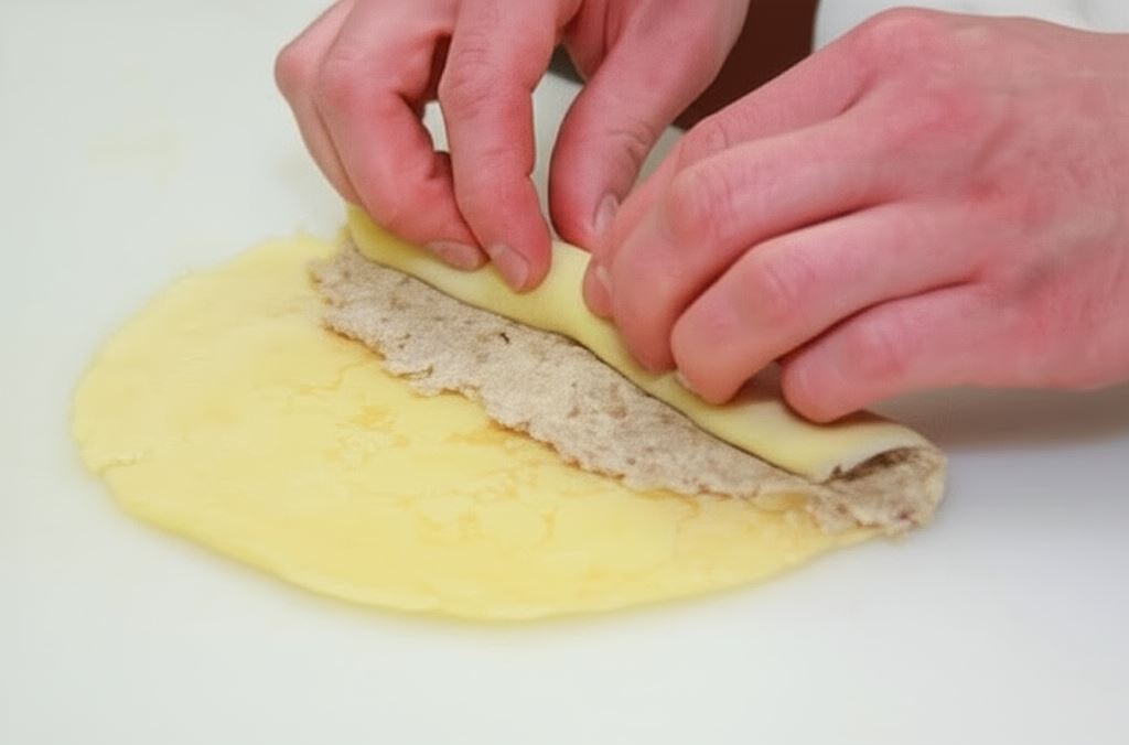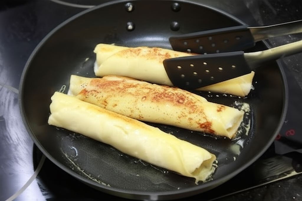 Nakładaj farsz na naleśniki, następnie zawijaj je w rulony.