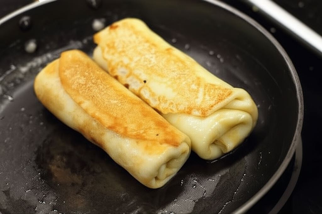 Przygotowane krokiety z mięsem mielonym obsmaż na zostającym oleju tak, by naleśniki stały się delikatnie chrupiące. Od razu serwuj.
