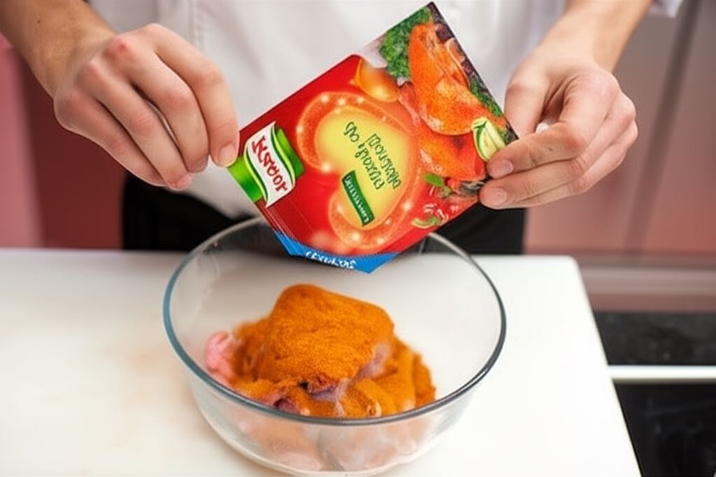 Podziel królika na kawałki, natrzyj go Przyprawą do złotego kurczaka Knorr.